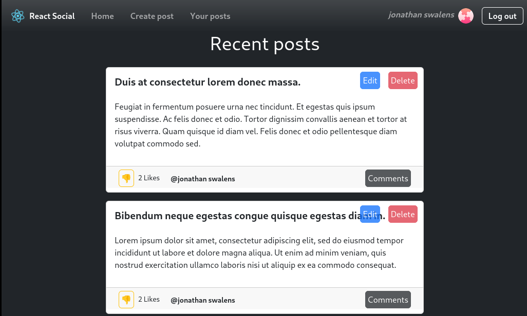 Built a basic social media platform with posts, likes and comments using React and Firebase.